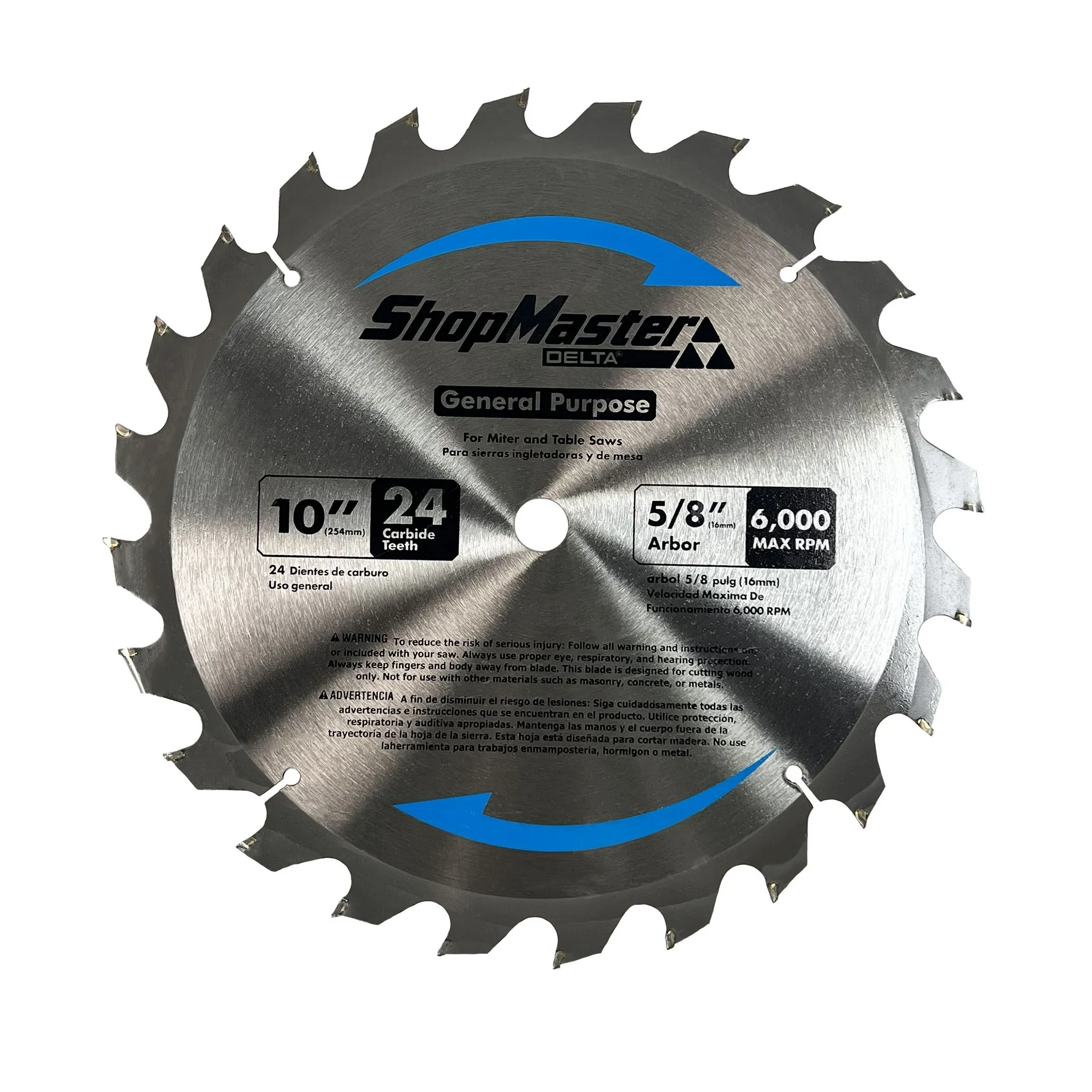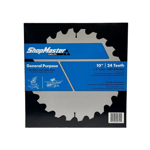 The ShopMaster™ 10-inch 24T Saw Blade is designed for precision and durability. This general-purpose blade features 24 tooth carbide tipped blade, for fast cutting through dry or treated lumber. The carbide tips provide exceptional longevity, making this blade a reliable choice for wood ripping and crosscutting. Additionally, its thin kerf design allows for effortless, smooth cuts, enhancing both performance and efficiency. Compatible with table saws and miter saws, this saw blade is perfect for professionals and DIY enthusiasts alike.