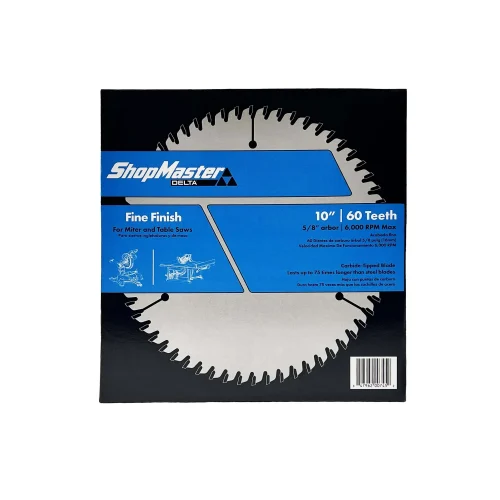 The ShopMaster 10-inch 60T Saw Blade is designed for precision and durability. This fine finish blade features 60 carbide-tipped teeth, ensuring smooth and clean. The carbide tips provide exceptional longevity, making this blade a reliable choice for wood ripping and crosscutting. Additionally, its thin kerf design allows for effortless, smooth cuts, enhancing both performance and efficiency. Compatible with table saws and miter saws, this saw blade is perfect for professionals and DIY enthusiasts alike.